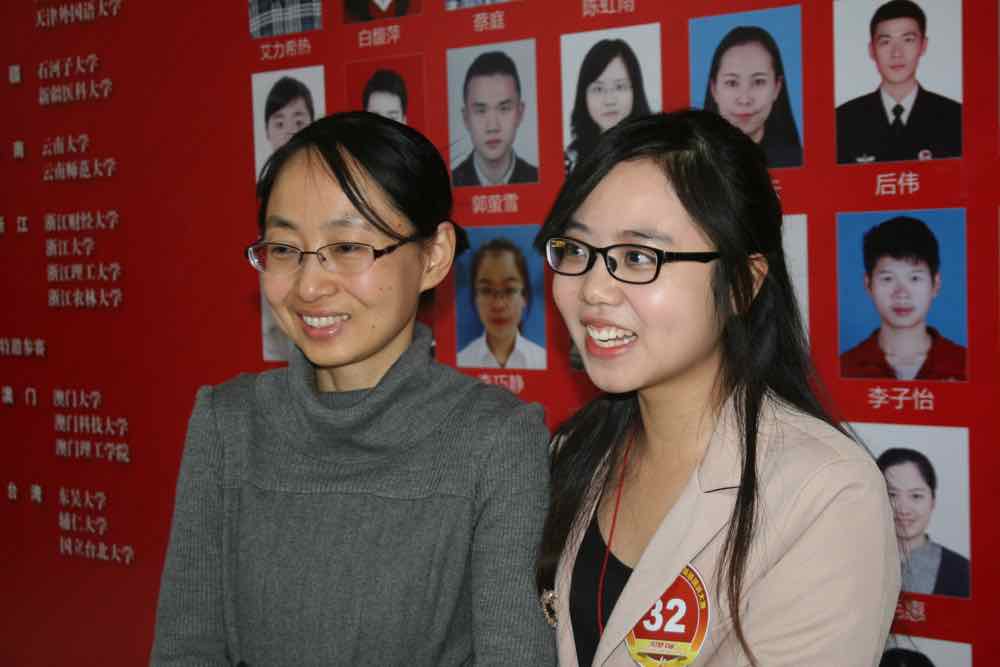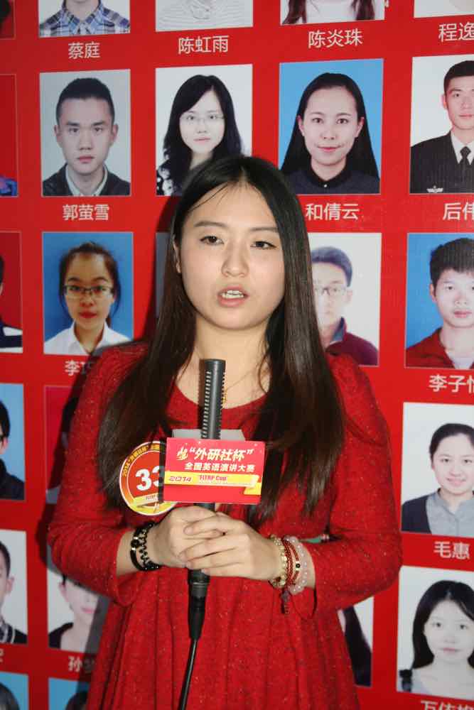 “第一个上台的感觉怎么样?”“爽!”32号选手何林钰成为2014“外研社杯”全国英语演讲大赛决赛第一个登上演讲台的参赛选手,然而她的脸上看不出丝毫的紧张,只有最甜美的微笑。她在台上动情地回忆了高考失利的遭遇,用自身经历证明了没有什么是不能改变的。接受小u采访时,她还是甜甜地笑着,依偎在指导老师身边,淡定而从容,“人生这么重大的坎坷都经历过了,第一个上台怕什么?”何林钰的“好运”没有被辜负,她轻松晋级第二阶段的比赛。